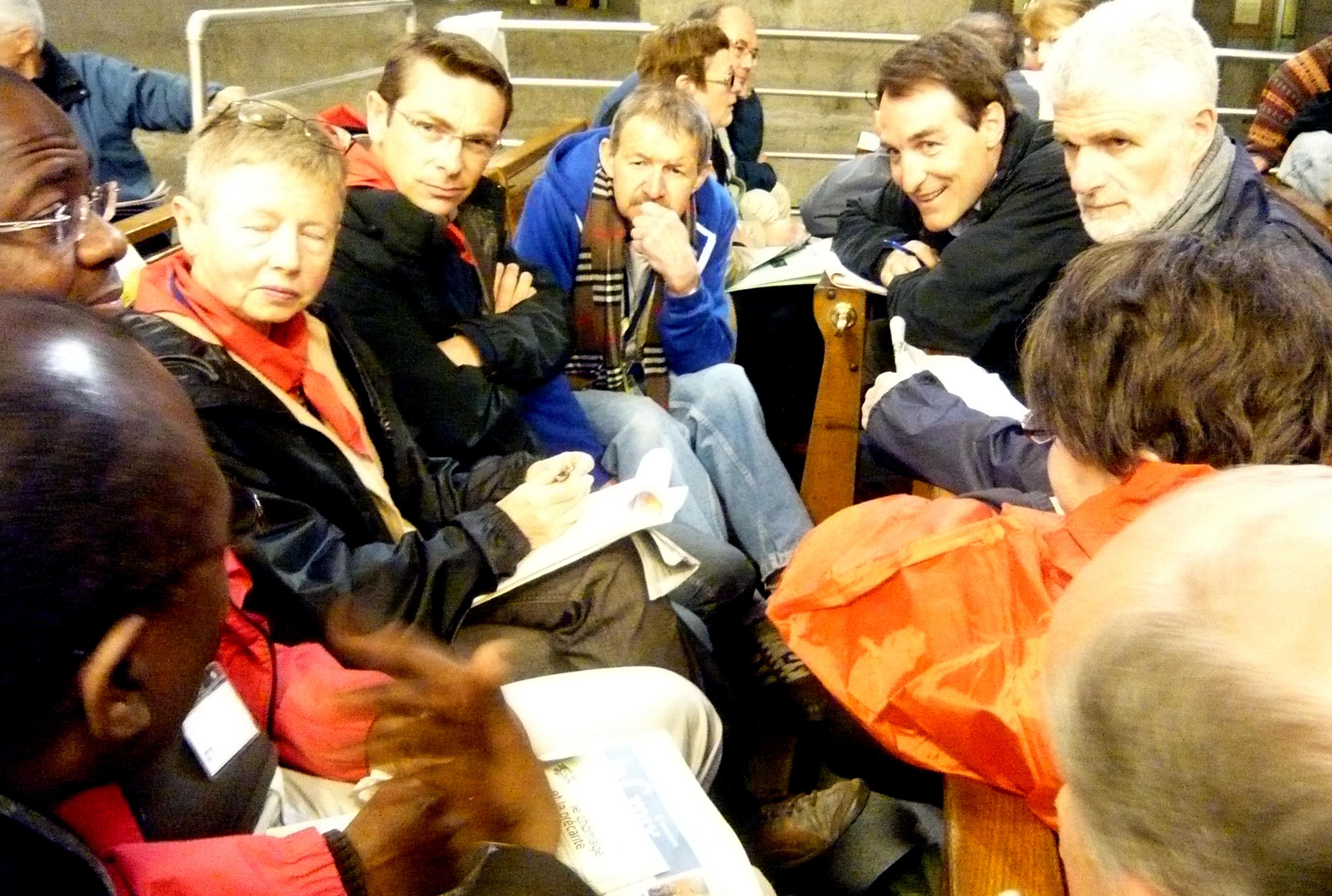 ~ Une expérience vécue en région parisienne : une association a été créée, il y a trois ans, par une paroisse pour une aide aux personnes en situation de chômage, pour un échange d’expérience, deux fois par mois et une invitation de professionnels ; régulièrement environ 35% des « adhérents » se retrouve dans une salle paroissiale. Les non-chrétiens ne souhaitent pas participer. Organiser, dans notre paroisse, une rencontre entre employeurs et demandeurs d’emploi. En paroisse, essayer de connaitre et de rencontre les demandeurs d’emploi qui sont souvent dans l’ombre à cause de leur situation.